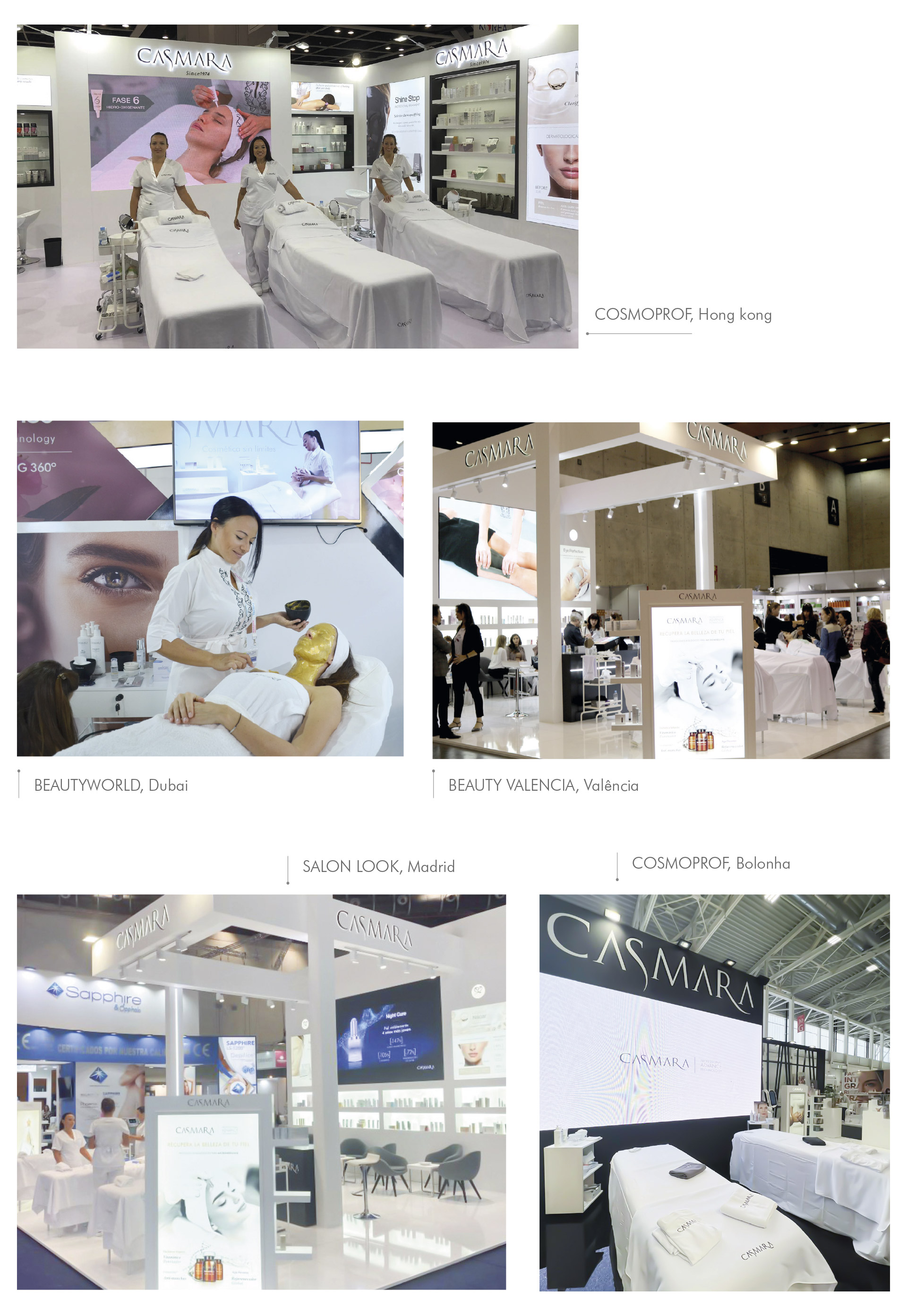 Desde a sua fundação em 1974, a Casmara tem participado nas feiras mais relevantes do setor. Estes eventos são a oportunidade perfeita para apresentar as últimas inovações do laboratório Casmara e são sempre aguardados com grande expectativa por profissionais da indústria de todo o mundo.
