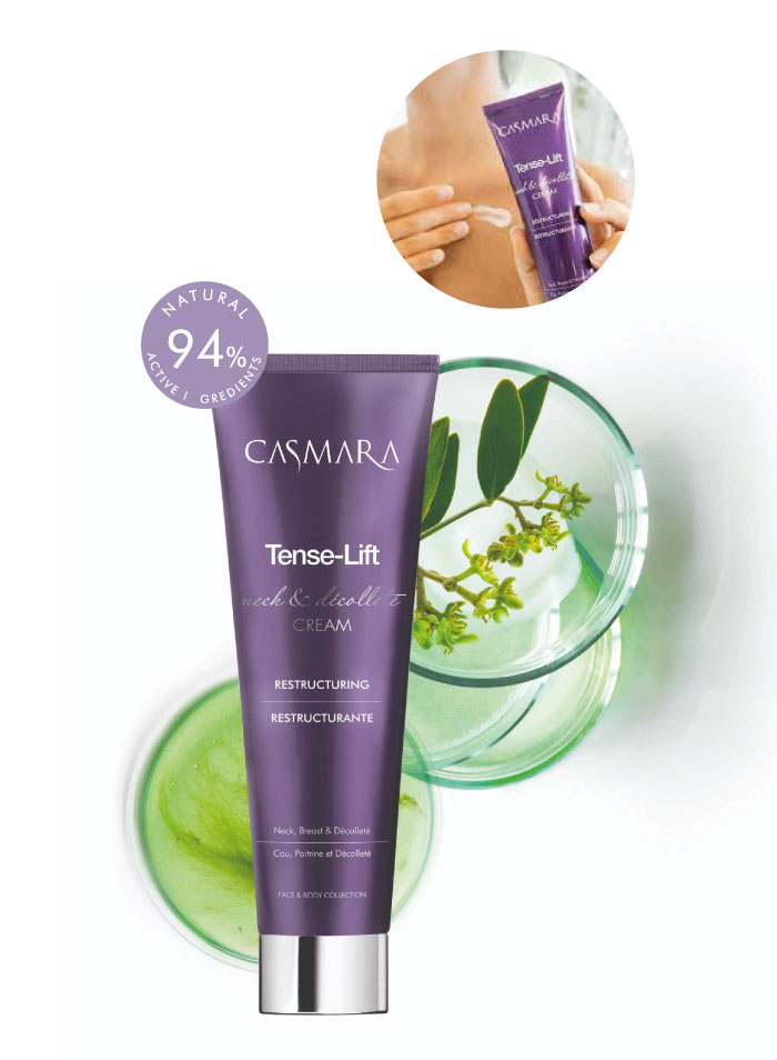O Laboratório CASMARA criou um extraordinário creme de tratamento preventivo que funde, pela primeira vez na sua fórmula, princípios ativos que atuam nas 5 ações-chave que provocam o envelhecimento na delicada zona do pescoço, decote e seios.